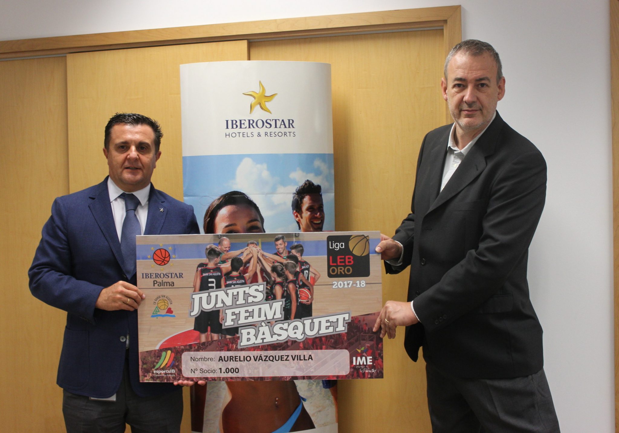 Entrega del carnet nº1000 al CEO en EMEA de IBEROSTAR, Aurelio Vázquez. El presidente del CB Bahía San Agustín, Guillem Boscana, ha hecho entrega esta mañana del Carnet de Socio nº1000 al CEO en EMEA de IBEROSTAR, Aurelio Vázquez en las oficinas de la compañía en Palma.