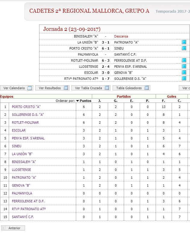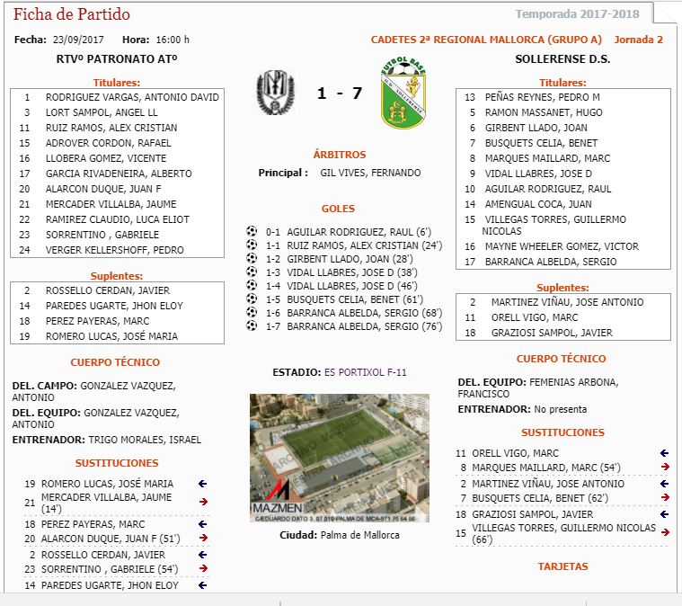 Cadetes 2ª Regional Grupo-A ; Rtv.Patronato At-Sollerense (1-7)