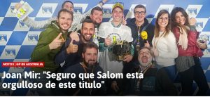 «La verdad es que no tengo palabras. Tengo la sensación que he luchado muchísimo para conseguir esto y que si empiezo a agradecer a gente no acabo. En realidad es una sensación super buena», dijo aupado ya a referente de la nueva generación del motociclismo español.