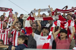 No hubo gritos, insultos ni nada de nada, sólo dos aficiones apoyando a los suyos con sus cantos, aplausos y charangas, chillaban unos y contestaban los otros y los bilbaionos comentaban las jugadas con desenfado y sorna.