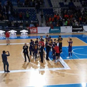 Els nostres socis pogueren celebrar al final del partit la classificació del FC Barcelona Lassa, després d’un gran encontre dels blaugranes.
