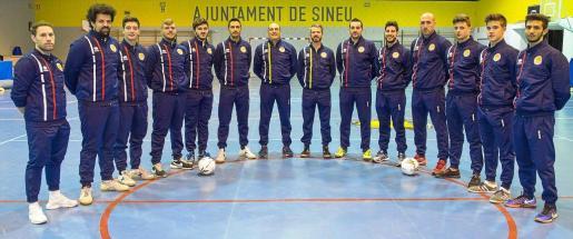 De izquierda a derecha, Niko, Juan Miquel, Guiem, Xisco, Damià, Mario, Tomás (entrenador) Ángel (segundo entrenador), Biel Alomar, Guiem Salvà, José Luis, Llorenc, Joan Alomar y Ben. Ellos forman la primera plantilla del Sineu Atlètic que resurge gracias al Restaurante Molí d’En Pau y a Agrupació Mútua.