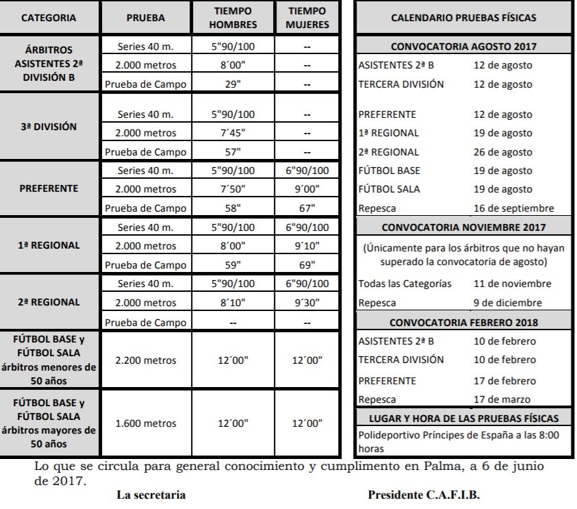 Junta Durante la mañana de hos abado dia 11 de Noviembre se han llevado a cabos las pruebas fisicas para arbitros según consta en la circula N-1 del Comíte de Arbitros , el proximo Sabado 18 tambien habra en el mismo escenario del principes de España