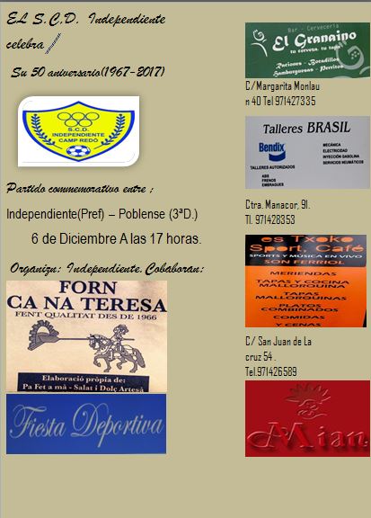El Miercoles dia 6 a las 09,30 Hrs tendra lugar la presentación de los 13 equipos para esta temporada 2017-2018, y en el marco del 50 Aniversario de existencia del club, por la tarde y a partir de las 17,00 Hrs tendra lugar un amistoso entre el equipo Amateur y la U.D.Poblense de Tercera División