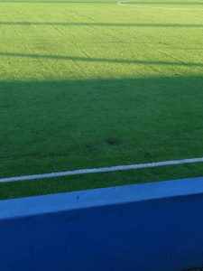 SegĂșn nos informan se puso alcantarillado nuevo y por lo visto se ha hundido, el terreno de juego cuenta con muchos baches y arrugas en el cesped.