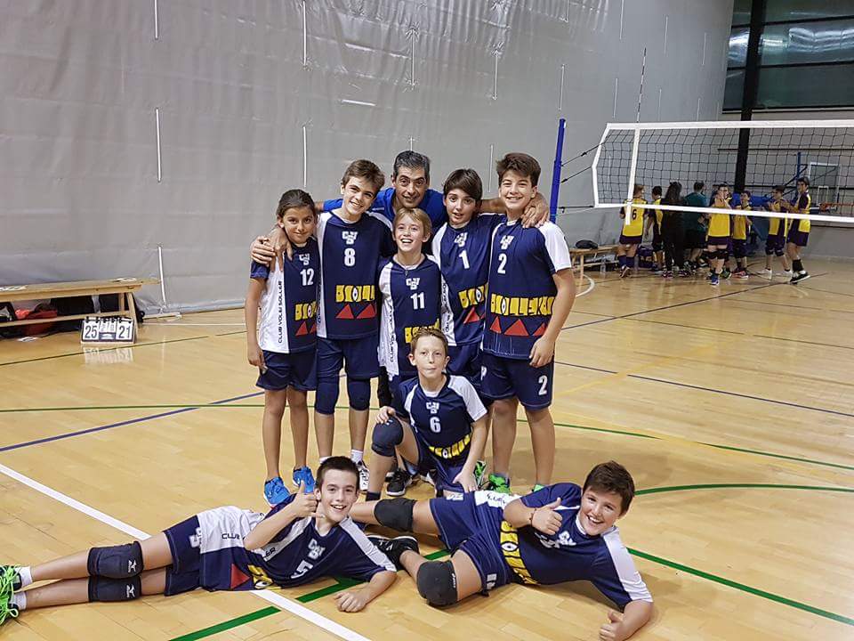 Còmode victòria de les nostres nines davant un equip col·legial molt inocent, a pesar que les nostres nines començaren el partit un poc fredes, com la temperatura que feia al pavellò. Però de mica en mica les nostres nines es varen anar ficant en el partit i degut a la millor qualitat tècnica les solleriques s’anaven imposant en el joc i en el marcador a mida que avançava el set. Tot i anar per darrera en el marcador, les col·legials lluitaren de valent tot el partit, defensant cada pilota, però poc poguéren fer davant la serietat del joc de les solleriques i la contundència amb el seu atac.