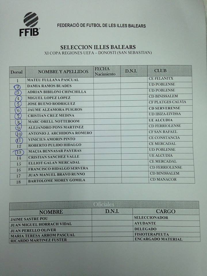 Baleares: Bennassar, Ramos, Bibiloni, Miguel Lopez, Jose Bueno (Bravo min.54), Jaume Alzamora (Pulido min.63), Cristian Cruz, Marc Orell, Alejandro Pons, Antonio y Vinicius (Sanchez min.54).