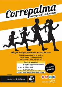 L’IME té el plaer de convidar-vos el pròxim 10 de desembre a les 11:00 hores, amb motiu de la commemoració del dia mundial dels DRETS HUMANS, a participar a la Cursa de Correpalma (curses amb cor) emmarcats dins el programa de Nadal de l’Ajuntament de Palma-IME.