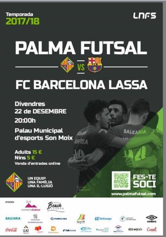 El Palma Futsal a puesto ya a la venta las Entradas para el partidazo que se vivira en Son Moix el proxÃmo Dia 22 de Diciembre, el objetivo una vez más es llenar Son Moix hasta la bandera y aupar al equipo en este dificl partido ante el equipo azulgrana.