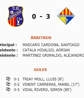 En partido aplazado en su dia  Partido aplazado y correspondiente a la Jornada 18 de esta categoria el At.Villacarlos ha derrotado a domicilio al Ferriolense por 0-3.Al descanso se llego con un 0-2