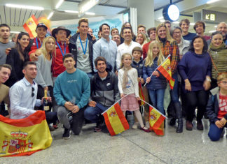 Los medallistas de plata y bronce del Campeonato del Mundo de 420 han sido recibidos esta tarde en el Aeropuerto de Palma por el director deportivo del Real Club Náutico de Palma, Manu Fraga, y una nutrida representación de deportistas del club así como familiares y amigos de los regatistas.