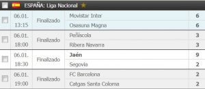 Resultados y Clasificación Liga Nacional Fútbol Sala (Partidos disputados este Sabado)