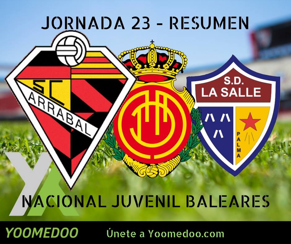 La Penya Arrabal mantiene el liderato en la Liga Nacional Juvenil después de la #J23 en la que ha vencido a un Atlètic Balears que baja hasta la sexta posición. Trece victorias consecutivas avalan el indiscutible liderazgo de La Penya, a 12 puntos del segundo clasificado. Miguel llabres, Nicolás Viader,Pere Mascaró y Guillermo Esteban metieron los goles para los locales. Xavier Bordoy hizo lo propio para el Atlètic Balears.