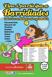 L’Institut Municipal d’Esports (IME) inicia el nou programa trimestral de Barridiades. Aquestes jornades lúdicoesportives tindran lloc cada dissabte de 10.30 a 13.30 hores a diferents barris de Palma, fins el mes de març. Són activitats gratuïtes i estan dirigides a tots els infants i joves a partir de 3 anys.