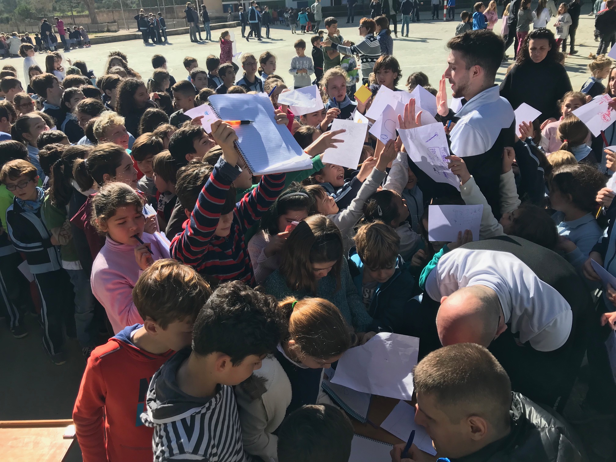 Visita especial para el IBEROSTAR Palma, que esta mañana ha compartido una mañana con los alumnos y alumnas del colegio en el que los equipos del club, el Imprenta BahÃa, empezaron a jugar, el Colegio La Porciúncula del Arenal en Palma.
