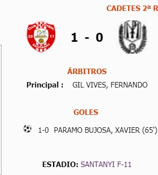Partido disputado en Santany con dos equipos muy parejos y que se decidio en los ultimos minutos de partido por una cesión del balón a su portero por parte del Patronato. De esta falta llego el gol de la victoria local