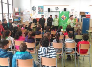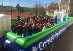 El pueblo de Sant Jordi disfrutó con el Palma Futsal. Una amplia representación de la primera plantilla del equipo mallorquín visitó el CEIP Sant Jordi para compartir la mañana con un centenar de alumnos de tercero, cuarto, quinto y sexto de Primaria en el marco de la campaña «Jugam amb l’Elit» que promueve el Consell Insular de Mallorca y del que el Palma Futsal es un fiel colaborador. Paradynski, Chicho, Quintela, Joselito, Tomaz y Éder se quitaron el mono de trabajo durante unas horas para pasar a ser monitores y formadores de jóvenes en base a si experiencia en el deporte. Así, intercambiaron impresiones con los jóvenes sobre los valores positivos que se adquieren a través del deporte y lo recomendable que es la práctica deportiva de forma saludable. Además, también disfrutaron jugando con el futbolín con los jugadores del conjunto balear.