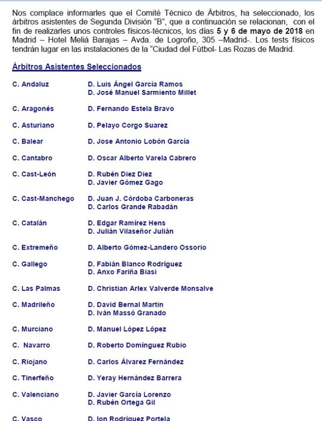 Estos son los elegidos para optar el ascenso a Segunda División como árbitros asistentes. ¡Suerte a todos!