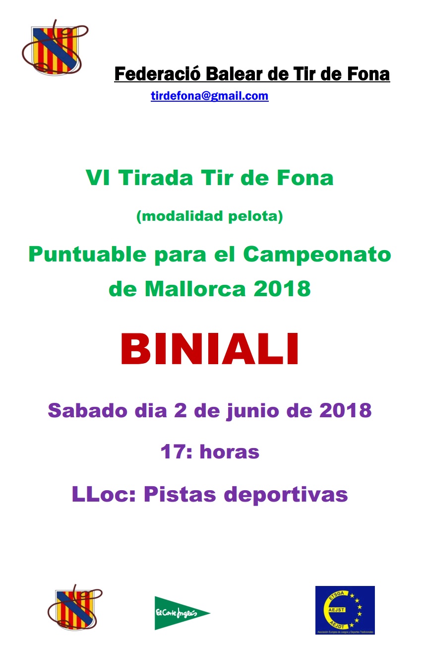 Tir de Fona (Pilota): Dissabte 2 de Juny a les 17 Hores a BINIALI