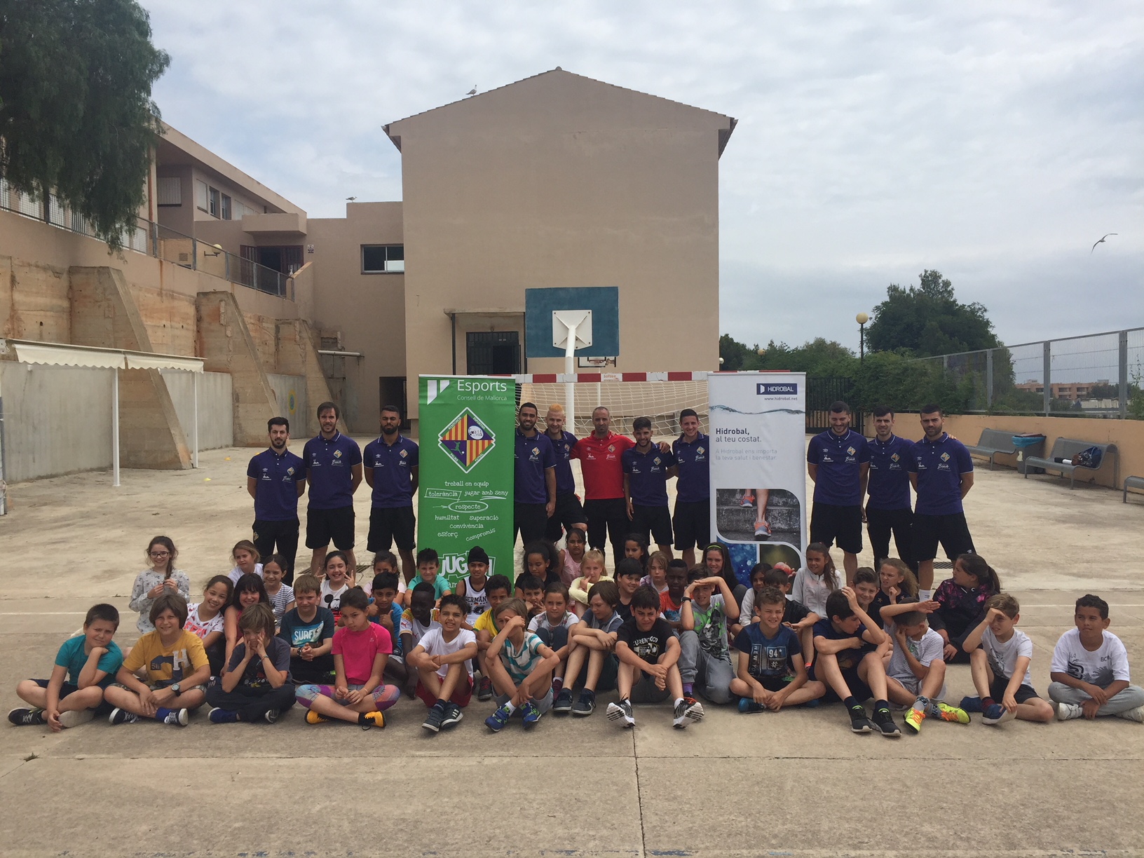 4 junio 2018 | Por lorenzo | Categoria: Fútbol SalaLos jugadores del Palma Futsal imparten la clase de educación fÃsica a los alumnos del colegio Es Saboners, en Magaluf. Jornada formativa fomentada por Hidrobal, que se suma a las iniciativas de promover jornadas formativas en los colegios mallorquines.
