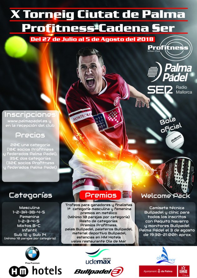 Torneo Ciudad de Palma Profitness – Cadena SER de pádel , del 27 y el 5 de agosto en las instalaciones del Palma Padel