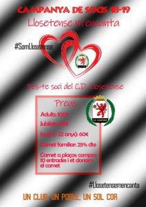 El CD Llosetense ha iniciat novament la campanya de socis per la temporada 2018-19 amb molta il·lusió amb un projecte renovat que incorpora al primer equip una remodelació prà cticament total de la plantilla.