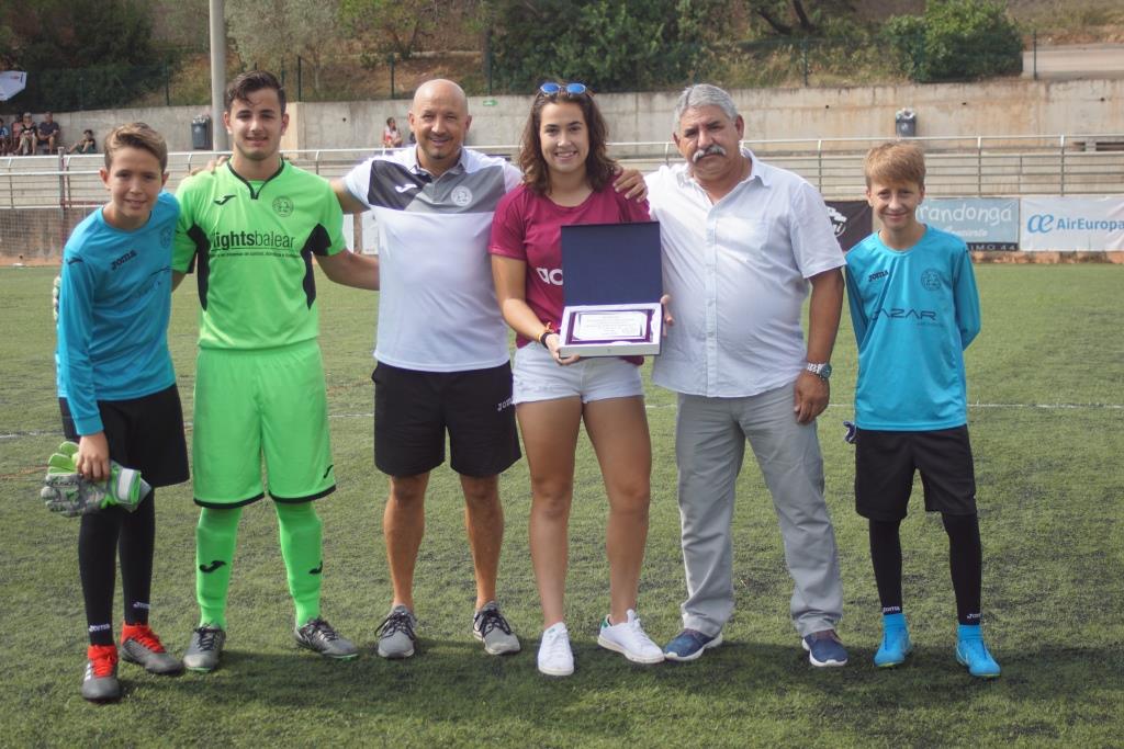 En los prolegómenos del partido correspondiente a la segunda jornada de la liga nacional juvenil que enfrentaba al C.D. Cide con el C.D. Ferriolense, el club de Son Rapinya ha realizado un merecido homenaje a Cata Coll por su reciente subcampeonato del mundo sub-20. El acto consistió en la entrega de una placa conmemorativa por ese subcampeonato, placa que fue entregada por el presidente del club, Esteban García, y por el director deportivo, Pedro del Barco.