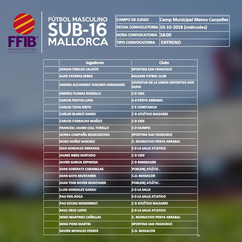 Juanma Darder ha dado a conocer una nueva lista de jugadores convocados para llevar acabo un entreno el proxÃmo Miercoles en Inca
