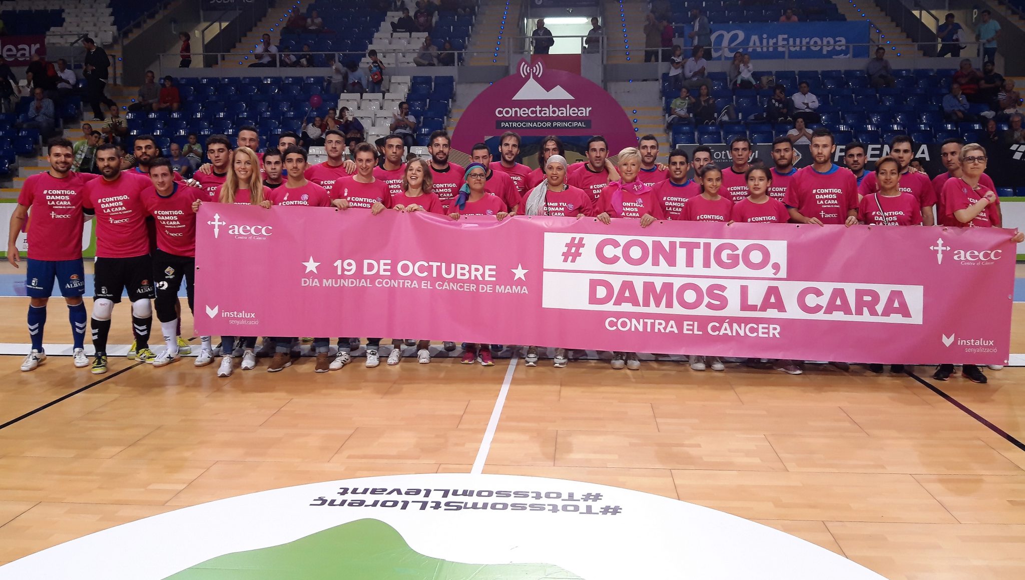 El encuentro ha estado marcado por todos los actos realizados en los prolegómenos con carácter solidario por dos motivos: el Día Mundial contra el Cáncer de Mama y el apoyo a los afectados por la riada de la semana pasada en el Levante de Mallorca. Una de las iniciativas fue colocar una urna a la entrada del pabellón para que todos los aficionados pudieran realizar una donación destinada a los afectados. Además, los jugadores del Palma Futsal saltaron a la cancha con un chico de la cantera del Cardassar de fútbol y se realizó un emotivo minuto de silencio antes del pitido inicial. Respecto a las acciones por el Día Mundial contra el Cáncer de Mama se repartieron lazos rosas en la entrada y se repartió una botella rosa de Solán de Cabras a cada mujer que accedía al pabellón. Antes del partido, los equipos han posado con mujeres que padecen o han padecido esta enfermedad enfundados con una camiseta rosa con el lema de la Asociación Española Contra el Cáncer (AECC) “Contigo damos la cara” y con una pancarta con ese mismo eslógan.
