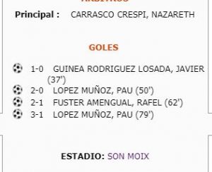 Partido disputado en Son Moix en una mañana soleada y algo calurosa con claro tirunfo local a pesar de lo algo ajustado del marcador. Al descanso se llego con la victoria local por 1-0