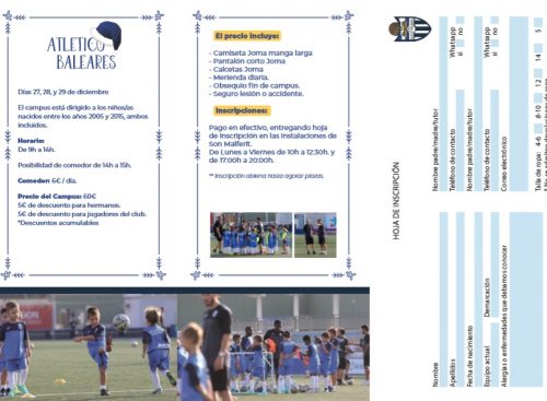 Puedes ponerte en contacto con el responsable del Campus de Navidad ATB para cualquier aclaración, Toni Egea, llamándole al 654 62 08 26 / 637 80 53 01 o escribiendo un e-mail a campus@atleticobaleares.com