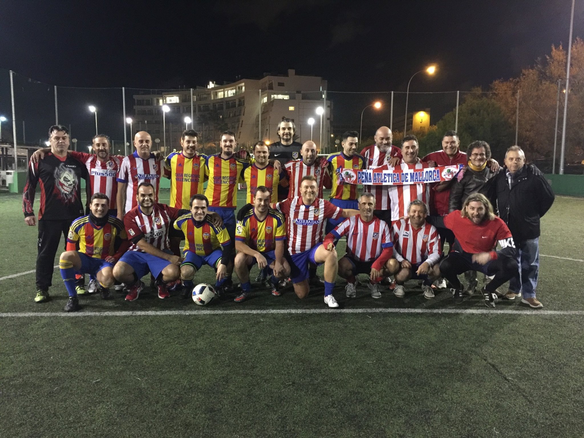 Ayer asistimos al primer partido de hermanamiento de peñas que han disputado la PEÑA ATLÉTICA DE MALLORCA y la CASA REGIONAL DE VALENCIA. Partido donde el Valencia domino el encuentro desde su inicio con un marcador que en sus diez primeros minutos ya ganaba por 4-0 vimos una superioridad evidente pero como el escudo lo dice el ATLÉTICO MADRID puso garra y pundonor luchando cada balón y conseguía marcar dos goles y acercarse a su rival. En la segunda mitad los ATLÉTICOS pusieron más ganas y controlaron un poco más el encuentro pero la mayor calidad de los VALENCIANOS y su físico dio sus frutos dando cuenta a su rival marcando cinco goles más y colocando un marcador ya imposible para el equipo local. En dos faltas cometidas al borde del área marcan dos goles más y en una jugada muy bien llevada consiguen otro gol que seria definitivo quedando el resultado final de ( 5 — 9 ). al final del encuentro el presidente de la peña ATLETICADE MALLORCA don RAFAEL LOZANO SÁNCHEZ hizo entrega del trofeo de campeón al equipó de la CASA REGIONAL DE VALENCIA y la de subcampeon a la PEÑA ATLÉTICA DE MADRID. Agradecer la gran cordialidad de todos y esperamos se repita y siga siendo una fiesta.