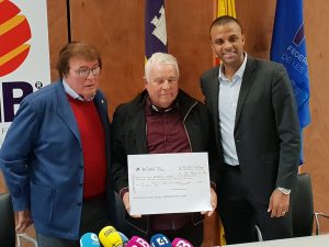 Miquel Bestard: “Des del Reial Mallorca i la Federació, decidiren fer una mena d’UTE per lluitar i recaptar el màxim de recursos per ajudar davant aquesta barbaritat. Vàrem fer el que vàrem poder però no tenguérem l’èxit esperat de públic, ja que els jugadors s’implicàrem al màxim per poder jugar. Sí que és ver que ho férem amb tota l’estima del món per ajudar. Aquesta comunitat va demostrar la qualitat humana per col·laborar i implicar-se en el desastre del Llevant. Molta gent hi participà. Es varen recaptar en el partit benèfic 32.986euros més 10.875 euros que ha aportat la FFIB amb cost de desplaçaments de jugadors, petits detalls, que s’han de sumar a la quantitat total, destinada a ajudar. El Reial Mallorca es va implicar molt més perquè tot el que suposa obrir l’Estadi de Son Moix ja són molts de doblers. Volem agrair a les empreses que ens han ajudat com són: ENTRÉES, EXCLUSIVE CATERING, IC SERVEIS, L’ARTISTA PIZZERIA NAPOLETANA, ESTRELLA DAMM, PROSEGUR, AUTOVIDAL, AIR EUROPA, GRAFIC 68, CODORNIU, FEDERACIÓ BALEAR DE TRANSPORTS, FEDERACIÓ HOTELERA DE MALLORCA i COCA COLA. Gràcies als patrocinadors i al Reial Mallorca, per col·laborar en tot el que fa falta. La RFEF donarà com sabeu 100.000 euros destinats a la millora de la instal·lació i estarem en marxadurant l’any. A més aquí hi ha fotografies de jugadors de la selecció espanyola absoluta firmades perquè les subhasteu si trobeu, un CD del cantant Juanito Makande dedicat, una camiseta de la selecció, firmada pel president Luis Rubiales i una camiseta de la selección balear de record”.