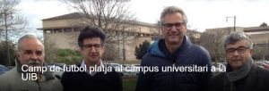 | La Federació de Futbol de les Illes Balears (FFIB) i la Universitat de les Illes Balears (UIB) sumen esforços per impulsar el futbol platja. Avui dematÃ, el president de la Comissió de Futbol Platja, Fèlix Peralta, el secretari de la Fundació i Joan Luis Solano han visitat el campus universitari per conèixer in situ, el lloc exacte on la UIB habilitarà un camp de futbol platja. Antoni Aguiló, vicerector de Campus, Cooperació i Universitat Saludable, i el Dr. Juan Frau, vicerector de Docència, han mostrat a la FFIB la zona on la nova instal·lació serà una realitat. La FFIB se congratula que la Universitat sigui receptiva a l’hora de fomentar la creació d’un espai especÃfic per al futbol platja, amb la delimitació d’un camp per fer aquesta modalitat en els pròxims mesos. La nova instal·lació serà exterior i estarà molt a prop del camp de futbol del campus universitari de la UIB.