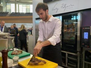 Se avecina un calendario complicado y la plantilla y el cuerpo técnico cogió fuerzas este lunes probando la “Tapa Palma Futsal” en la feria HORECA. El equipo se desplazó a las instalaciones del Palma Arena donde se celebra la feria dedicada a la hostelería y la restauración y en la que cada año descubren el diseño de la tapa que lleva su nombre y que diseña la chef Vicky Pulgarín, ganadora del programa televisivo MasterChef, que contó con el capitán Carlos Barrón como pinche de cocina. Ambos elaboraron la tapa a la que da nombre el club en el stand de la empresa Juvimar, entidad que colabora con el club y que cada año patrocina esta tapa. La tapa de este año cuenta con ingredientes de primer nivel como chuletón, rúcula y parmesano, entre otros, y que a buen seguro dará fuerzas a la plantilla para los partidos que se avecinan en las próximas semanas.