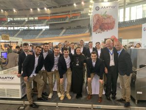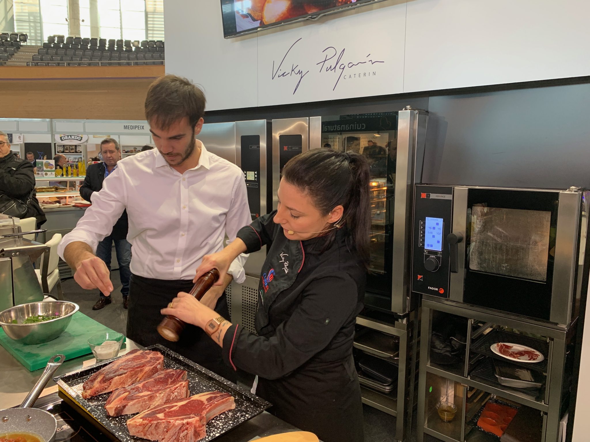 Se avecina un calendario complicado y la plantilla y el cuerpo técnico cogió fuerzas este lunes probando la “Tapa Palma Futsal” en la feria HORECA. El equipo se desplazó a las instalaciones del Palma Arena donde se celebra la feria dedicada a la hostelería y la restauración y en la que cada año descubren el diseño de la tapa que lleva su nombre y que diseña la chef Vicky Pulgarín, ganadora del programa televisivo MasterChef, que contó con el capitán Carlos Barrón como pinche de cocina. Ambos elaboraron la tapa a la que da nombre el club en el stand de la empresa Juvimar, entidad que colabora con el club y que cada año patrocina esta tapa. La tapa de este año cuenta con ingredientes de primer nivel como chuletón, rúcula y parmesano, entre otros, y que a buen seguro dará fuerzas a la plantilla para los partidos que se avecinan en las próximas semanas.