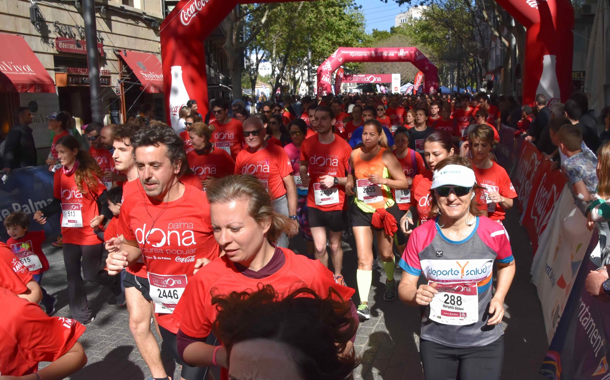 A las 17 horas la secretaria de Estado para el Deporte y presidenta del Consejo Superior de Deportes (CSD), María José Rienda, y la teniente de alcalde de Educación y Deportes, Susanna Moll. han dado inicio a la carrera con el tradicional corte de cinta, acompañadas del director general de Deportes del Ayuntamiento de Palma, Sergio Rodríguez; la Consejera de Cultura, Participación y Deportes, Fanny Tur; el director general de Deportes del Govern de les Illes Balears, Carles Gonyalons, y representantes de las entidades patrocinadoras, en el arco situado en la plaza de la Porta Pintada en dirección a la calle de los Olmos.