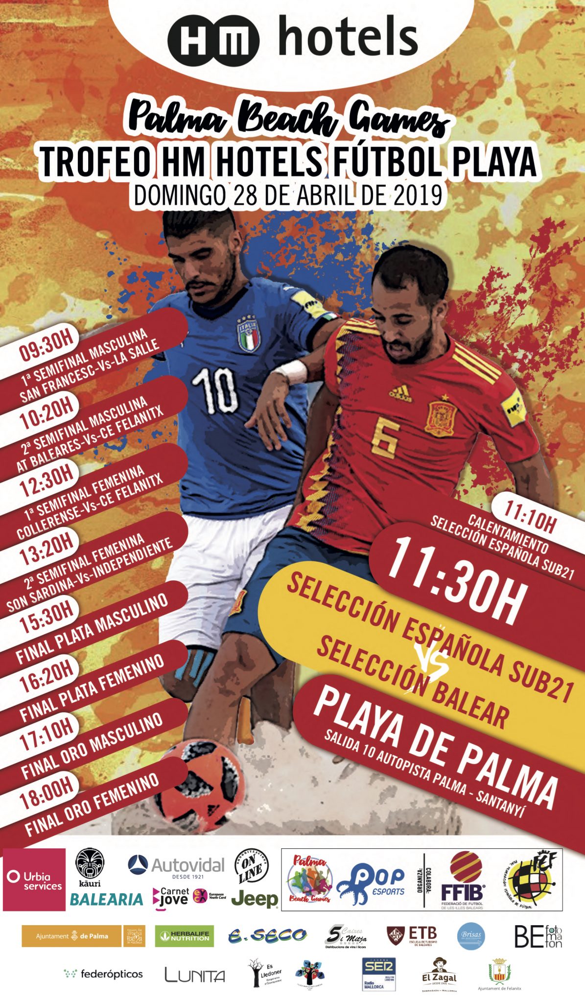 Finalment, diumenge es duran a terme les finals de la competició de voleibol i la competició de futbol platja al I Trofeu HM HOTELS de Futbol Platja, amb el partit de la Selecció Espanyola de Futbol Platja Sub-21 contra la Selecció Balear. A les 15.30 hores es disputaran les finals de futbol platja juvenil i sènior femení.