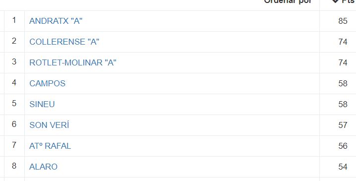 | SON SARDINA «A» – PORT DE SOLLER | SON SARDINA F-11 | 20:00 | 38 | 2-0 | |||||