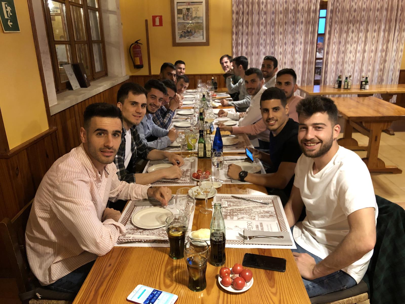 Mesón Ca’n Pedro durante la cena que ha realizado la plantilla y cuerpo técnico tras el pase a las semifinales del playoff por el título de liga.