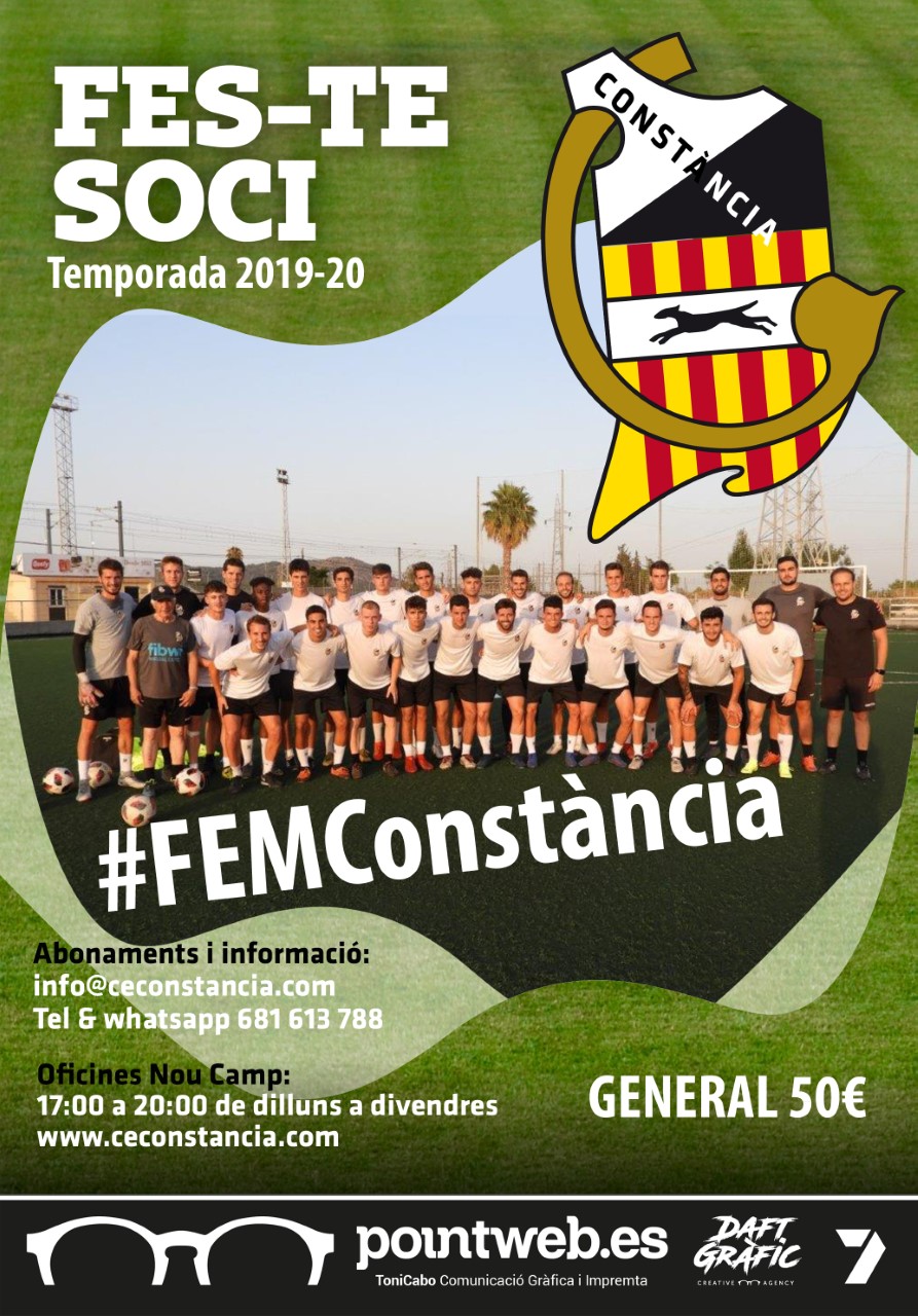 Fa uns dies es va presentar la campanya de socis del CE Constància sota el lema #FEMConstància. Un lema que fa relació a que aquesta temporada el club inquer tindrà un equip femení. Enguany, com a novetat, hi haurà un preu únic de 50€. Un dels preus d’abonats més econòmics de la Tercera Divisió balear. L’objectiu és augmentar la massa social del club i omplir el Nou Camp els dies de partit. L’aportació dels socis és fonamental pel bon funcionament del club. Tot aquell que es vulgui fer soci es pot acostar a les oficines del club de dilluns a divendres de 17:00 a 20:00.