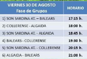 17:17 horas: Son Sardina-Balears 18:00 horas: Collerense-Algaida 18:45 horas: Son Sardina-Algaida 19:30 horas: Balears-Collerense 20:15 horas: Son Sardina-Collerense 21:00 horas: Algaida-Balears