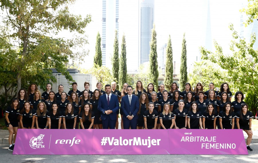 Las instalaciones de Renfe en la Estación de Chamartín han acogido el inicio del Seminario de pretemporada de las Árbitras de Primera. Gonzalo Pastor, Director de Responsabilidad Corporativa de Renfe, ha sido el responsable de recibir a nuestras colegiadas. “Para nosotros es un privilegio que estéis en nuestras instalaciones. Compartimos con vosotras muchos valores, como el compromiso por la igualdad, el esfuerzo, la constancia. La sociedad está cambiado y vosotras formáis parte de ella y ayudáis a transformarla”, ha destacado.