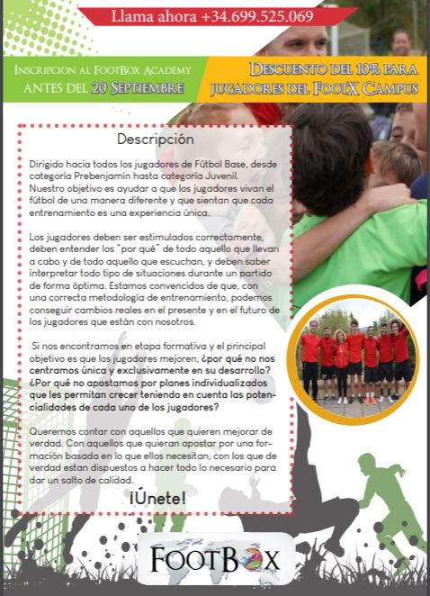 Para consultas o ampliación de información podéis enviar mail a info@footx.org o WhatsApp 699525069.