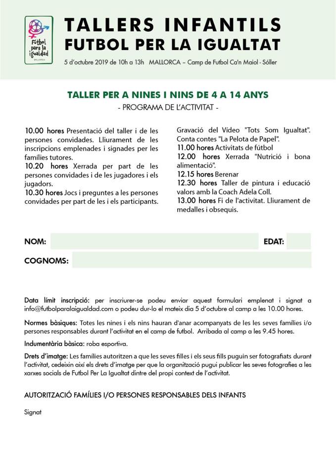 TALLER INFANTIL 3ª EDICIÓN DE FÚTBOL PARA LA IGUALDAD. ; 5/10  10, 00Hrs -13:00Hrs CAMP MAIOL ( SÓLLER)