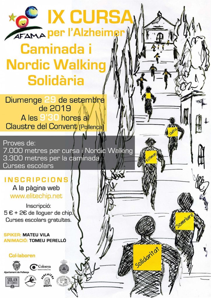 REGLAMENT Art.1. Organització – AFAMA Pollença “Associació de Familiars i Amics de Malalts d’Alzheimer” organitzen en col·laboració amb l’Ajuntament de Pollença i Club d’atletisme Pollença una CURSA, Nordic Walking i caminada per l’Alzheimer a Pollença el proper diumenge 29 de setembre de 2019 a partir de les 9:30 h.