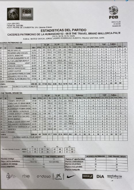 El entrenador del Cáceres Patrimonio de la humanidad, ha destacado el buen trabajo de su equipo: “El equipo ha hecho un partido sensacional en cuanto a al aspecto defensivo. Nos ha costado encontrar su estilo cómo para encontrar un equilibrio pero hemos dado un paso al frente. Yo creo que el equipo se ha esforzado al máximo”. Por otro lado, opina sobre el juego y la victoria del B the travel Brand Mallorca: “Ha sido un partido bastante controlado. Hemos llegado a coger una ventaja de 5 puntos pero han aparecido jugadores como Bivià, con mucha experiencia, y como Bropleh. Mallorca se lo ha merecido peor creo que si hubiéramos ganado nosotros también hubiera sido una victoria merecida”.