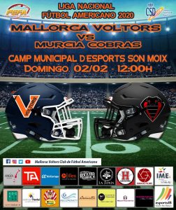 La LNFA serie A llega este domingo a Son Moix en su tercera jornada. Mallorca Voltors se enfrentarĂĄ a Murcia Cobras, serĂĄ una batalla a todo o nada, estĂĄ en juego algo mĂĄs que una victoria, ambos equipos optan a quedar entre los cuatro primeros y el average entre ellos puede ser decisivo de cara a los playoffs. Se espera un encuentro atractivo e interesante que a buen seguro no dejarĂĄ a nadie indiferente.
