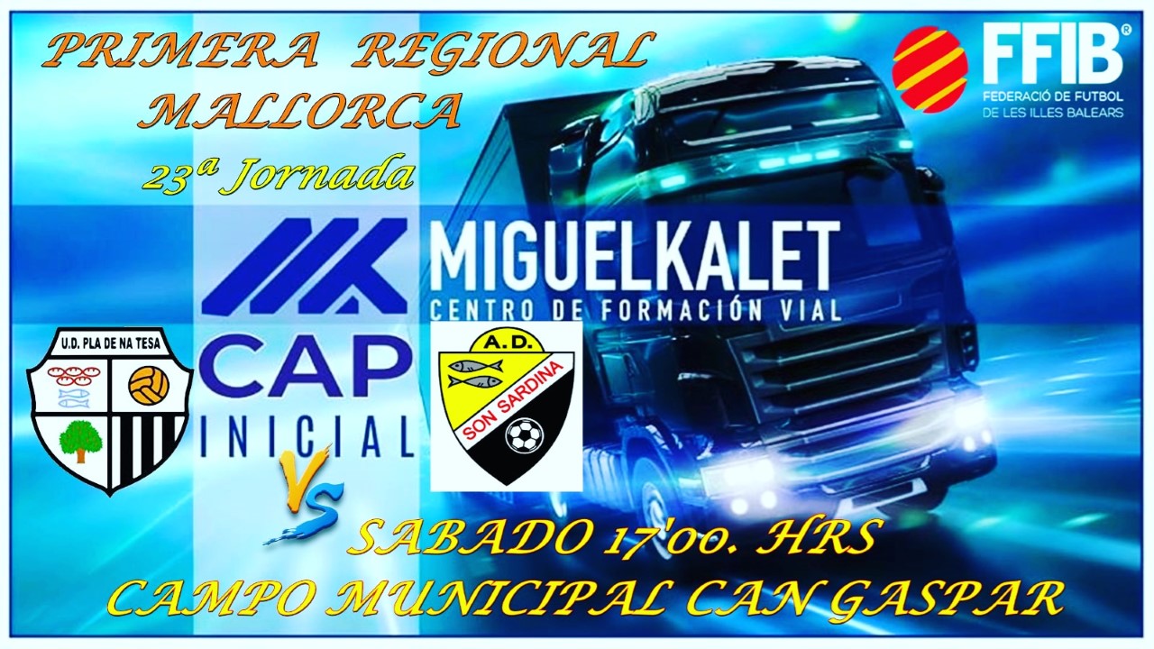 Otra semana más estaremos en el municipal de CAN GASPAR Sábado 8 Febrero a las 17″00.Hrs para comentar la 23″ Jornada de liga en la PRIMERA REGIONAL MALLORCA con el encuentro entre el 3″ Clasificado el A. D. SON SARDINA con 43. Puntos qué llega con su último partido perdido y que dejó escapar tres puntos aún así sigue en la disputa del campeonato y luchando en la parte alta. Por su parte la UD.PLA DE NA TESA recibe este encuentro en la 14″  Posición y con 30 Puntos viniendo con una derrota clara pero no merecida por el juego desplegado la semana pasada este equipo sigue mostrando buenas maneras pero no le acompañan los resultados ya que a sus rivales les cuesta en demasía sacar puntos sobre todo en CAN GASPAR.