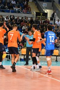 Con el empate a dos sets, ha llegado el Tie break definitivo. En esta ocasión la lotería no ha sonreído al equipo mallorquín que ha perdido 12-15 para decir definitivamente adiós a la Copa. Tras el partido el entrenador Marcos Dreyer ha demostrado su descontento con el resultado. “Llevamos mucho tiempo sin jugar bien y aunque lo hemos intentado no ha sido posible. Solo podemos pensar en la liga porque hemos preparado una fiesta que ahora será para otros” ha comentado. Por su parte el capitán Ricardo Perini, ha admitido que los jugadores han empezado muy bien pero luego “hemos desconectado por momentos”.